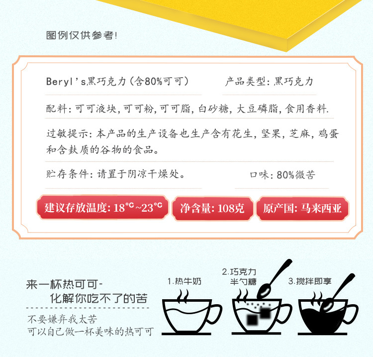 【2件起售】【自营】倍乐思微苦纯黑巧克力礼盒(含80%可可)108g